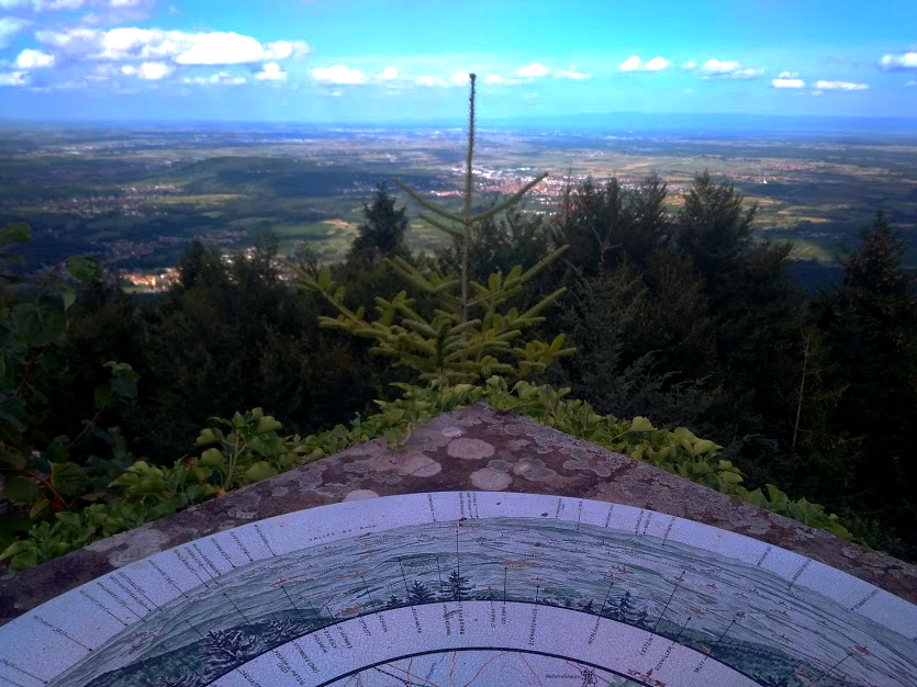 Вид на Эльзас со смотровой площадки открывается потрясающий (но, что может передать это слово или парочка фото?). Верхушки елей были вровень с этой площадкой, а смотреть вниз было невозможно – метров тридцать, не меньше.