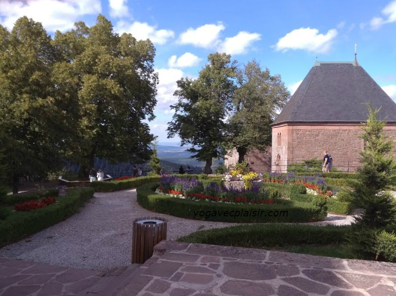 Mont Sainte-Odile, как и одноименный монастырь, возвышается над уровнем моря на 764 м, что чуть выше чем увиденный ранее Haut-Kœnigsbourg, но для тех кто имеет страх высоты, каждый метр – это победа.