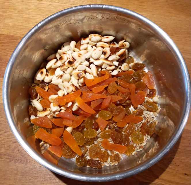 Неменяющиеся ингредиенты – это мука, мед и сахар, а также пряности. Остальная комбинация сухофруктов и орехов может видоизменяться (только не забывайте о весовом соответствии).
