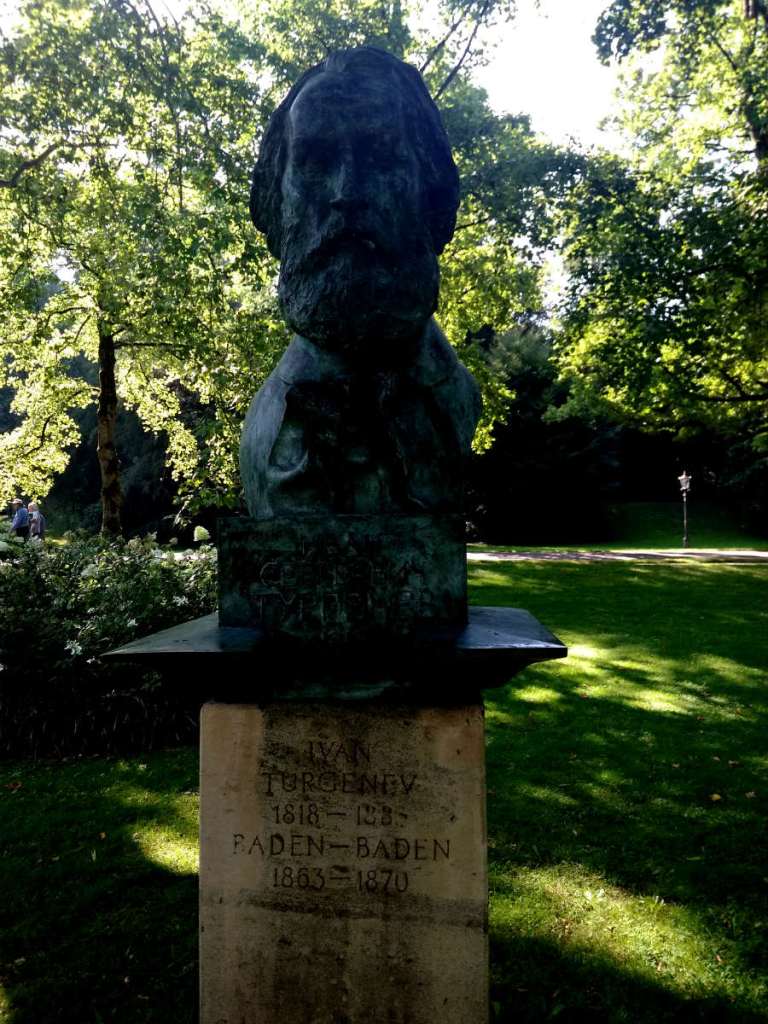 Еще один русский писатель настолько был впечатлен этим городом, что перенес в него события своего произведения – это Тургенев (роман «Дым»). Его бюст я повстречала в парке: на нем выбиты даты проживания Ивана Сергеевича – семь лет, с 1883 по 1870 годы.