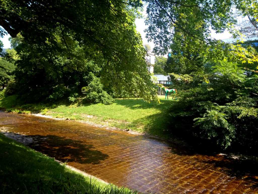 Искусственно сделанные пороги, микро-водопадики, отмели с камушками, где ходят маленькие уточки – глаз не мог охватить всей красоты человеческой фантазии. Поражала истинно немецкая щепетильность: пространство было действительно «вылизано» до стерильности, даже напрягала немного такая официозность.