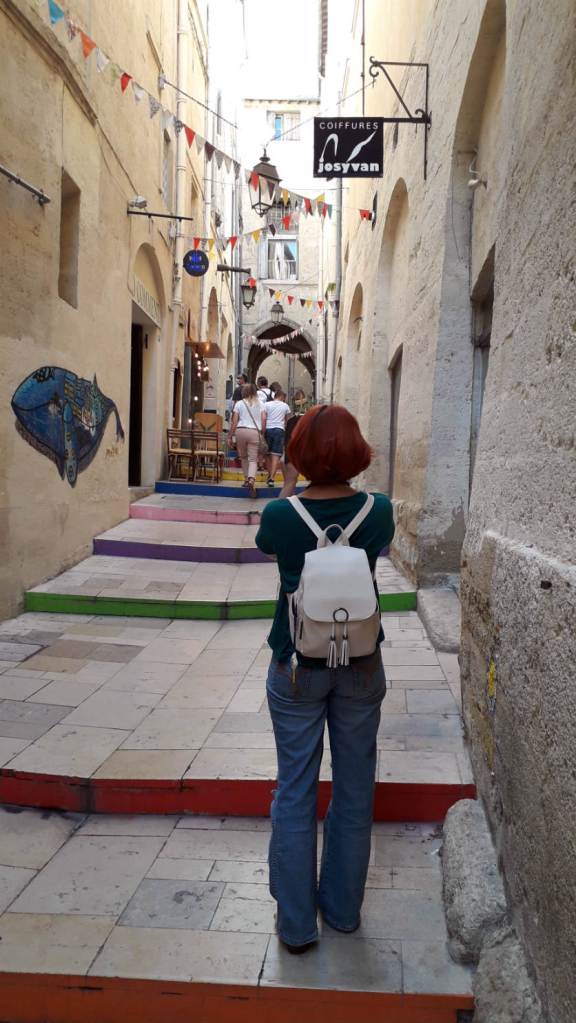 Учитывая, что вирус Ковида снова обострился и везде были развешены предупреждения о том, что ношение маски обязательно везде – почти половина города это игнорировала – а значит налицо неуважение к властям. А еще мой женский взгляд подметил, что южанки одеваются иначе: нет, не лучше или хуже – просто по-другому (что особенно замечалось среди молодежи). Также заметила, что мужчины свободно ходили в спортивных штанах по городу, что в Эльзасе практически не встречается (это одежда для спорта, а не для досуга) среди местного населения — только выходцы из «стран третьего мира» так одевались.