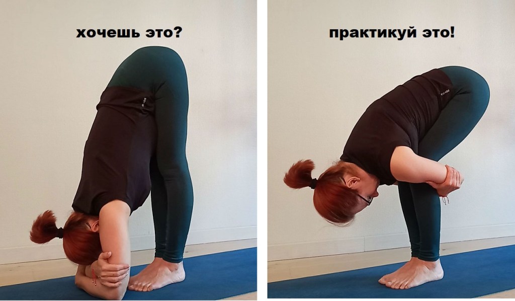 А еще маленькое противоречие: иногда я говорю «это не делаем, это некорректно, вот так – это вредно», но! Эти движения тоже иногда важно делать, но очень аккуратно, наблюдая, как реагирует тело, что ощущается в данный момент и где, что после занятия. На самом деле нет запрещенных действий – все зависит от того, насколько вы все контролируете. И это также дает ценный опыт в понимании себя.