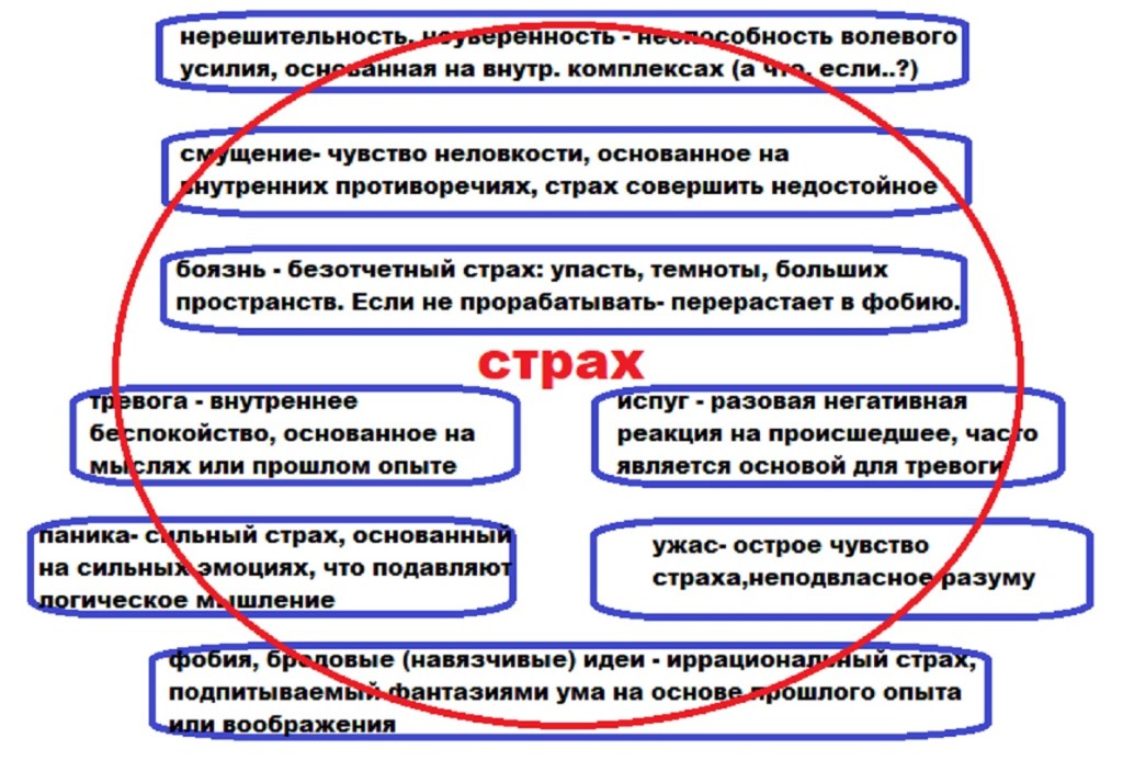 Кстати, вы знаете все варианты страха, его виды и подвиды? Может, повторим?
