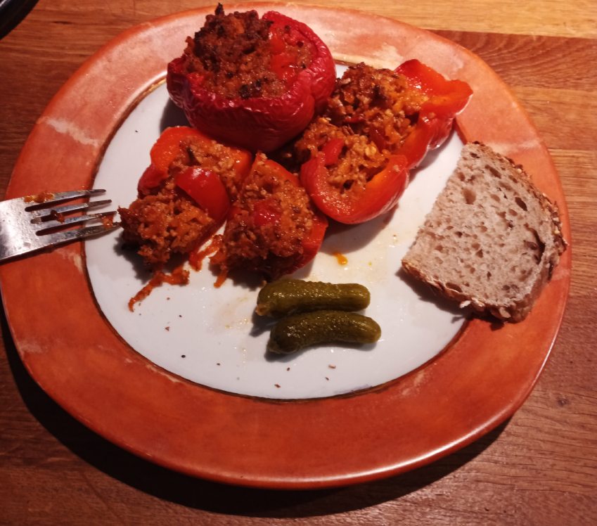 Процесс запекания перцев, фаршированных соевым мясом составляет не более 40 минут, хотя зависит от мощности вашей духовки. Сразу не вынимайте, — дайте блюду настояться еще минут десять, — за это время можно накрыть на стол или подготовить гарнир: я отварила булгур для мужа, — мне же хватило перцов с избытком.