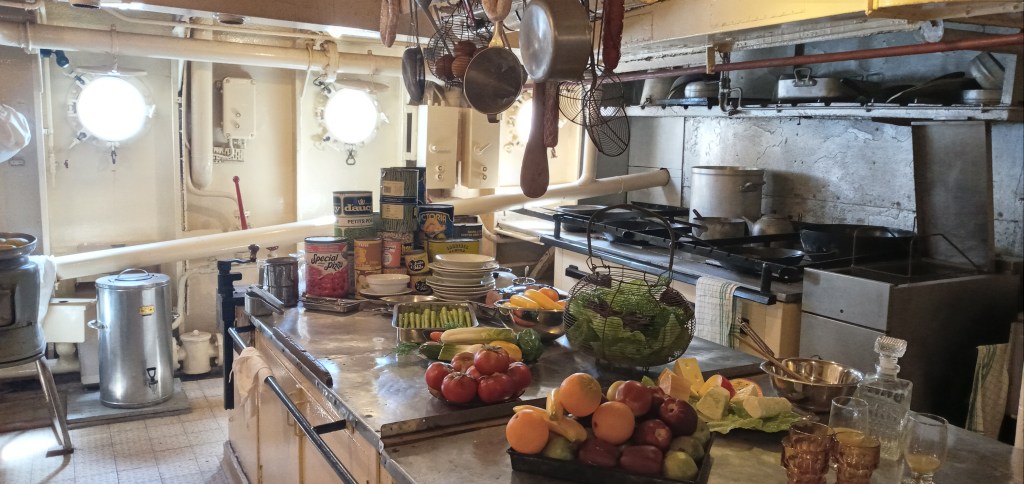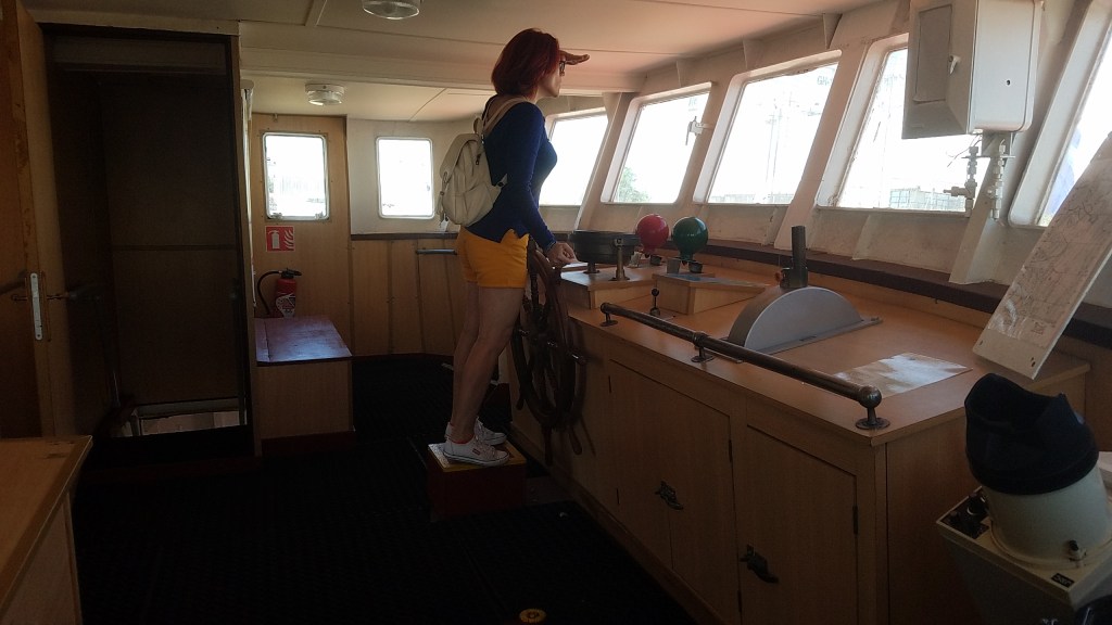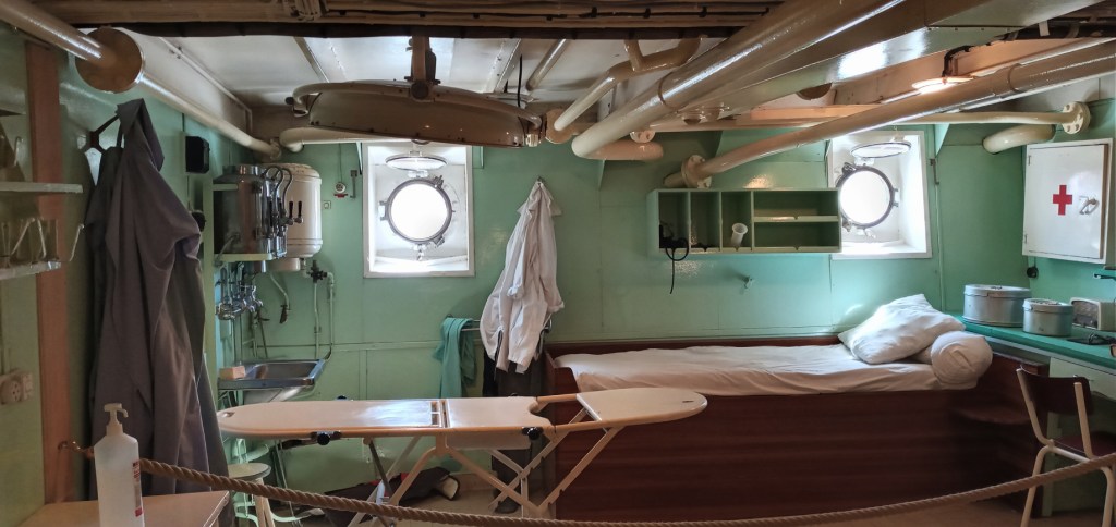 В этот раз музей оказался на большом корабле: мы прошли от нижних трюмов до верхней палубы, капитанского мостика и кают офицеров.