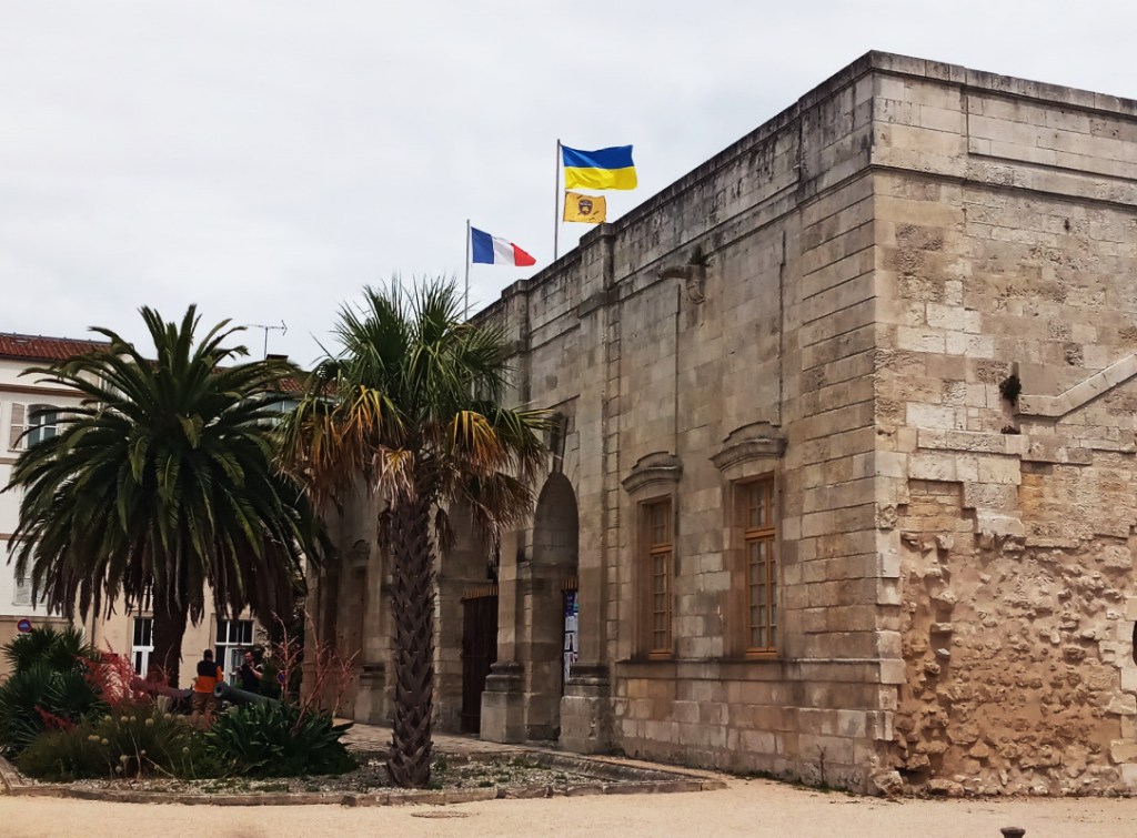 Мое сердце потеплело, когда я увидела drapeau ukrainien на стене городской ратуши (мэрия по-другому), который развевался рядом с французским. Кстати еще один мы видели на стене Королевских ворот, которые в старину были своеобразным въездом в город (не со стороны моря, конечно). Ратуша была построена в 13 веке, но до сих пор исправно выполняет функцию главной администрации города. Вот это качество постройки!