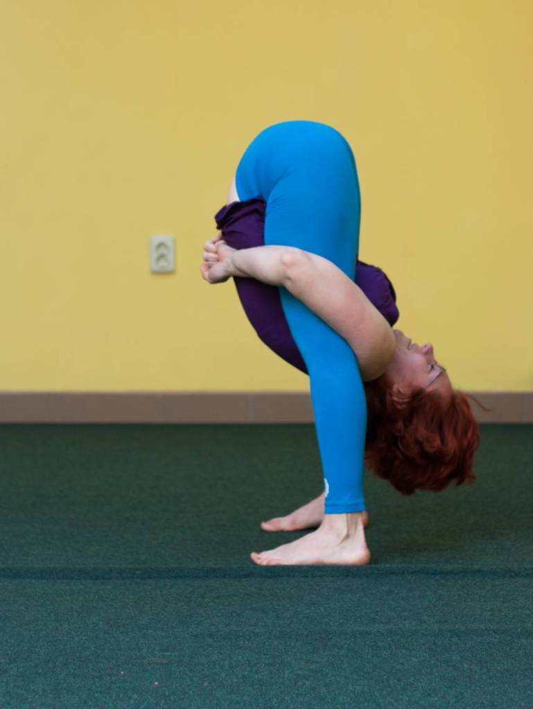 - Это не просто: положите живот на ноги и коснитесь лбом ног. Это уже из серии: коснитесь лбом пола (или сцепите руки за спиной в Титибхасане Б).