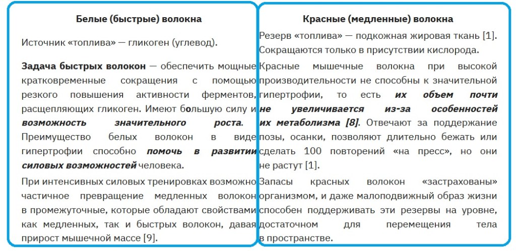 И да, те у кого преобладают быстрые волокна, имеют менее рельефную форму тела. Именно поэтому «кубики» на животе у них менее выражены при том, что тренируются они в разы больше. Но с другой стороны мышцы сильнее и быстрее = функционал круче ;) А качественное функционирование тела для меня всегда было в приоритете, ведь красота вторична, — так как недолговечна.