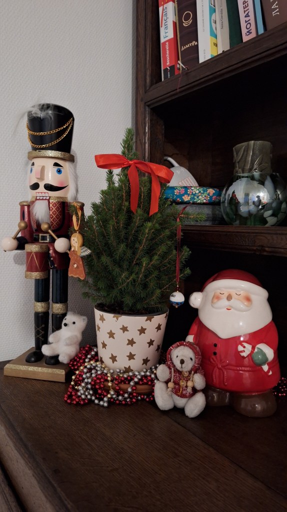 Обязательно туда вернусь еще раз, а в этот раз купила милую игрушку на елку в виде конфеты (из стекла). Кстати в этом же году купила себе елку живую, в горшочке, — а вдруг будет расти? Маленькая, но главное дух Рождества! А размер праздника у каждого внутри!
